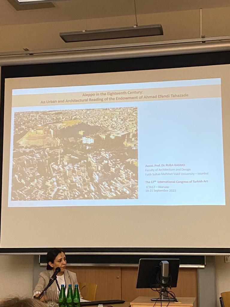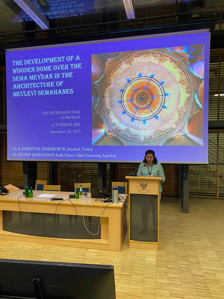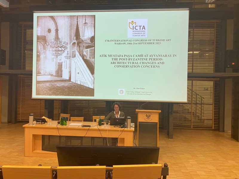 Bölümümüzün değerli öğretim üyelerinden Doç. Dr. Mine Esmer, Dr. Öğr. Üyesi Zeynep Tanrıverdi ve Dr. Öğr. Üyesi Ruba Kasmo; 18-21 Eylül 2023 tarihleri arasında Varşova'da gerçekleştirilen 17. Uluslararası Türk Sanatı Kongresinde (17th International Congress of Turkish Art) bildiri sunumları gerçekleştirdiler. Etkinlikte; bölüm başkanımız Doç. Dr. Mine Esmer "Atik Mustafa Paşa Camii at Ayvansaray in the Post Byzantine Period: Architectural Changes and Conservation Concerns" başlıklı sunumunu, Dr. Öğr. Üyesi Zeynep Tanrıverdi "The Development of a Wooden Dome over the Sema Meydan in the Architecture of Mevlevi Semahanes" başlıklı sunum ve "The Use of the 9 Persian Couplets Beginning with “Dânî semâ‘ çe büved?” in the Inscriptions of Mevlevîhane Semâhanes" başlıklı sunumlarını, Dr. Öğr. Üyesi Ruba Kasmo "Aleppo in the 18th Century: An Urban and Architectural Reading of the Waqf of Ahmad Efendi Tahazade al Chalabi (1753 1765)" başlıklı sunumunu gerçekleştirdiler. Hocalarımızı tebrik ediyor, değerli çalışmalarından dolayı teşekkür ediyoruz.
