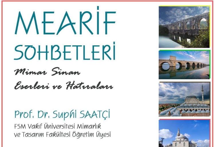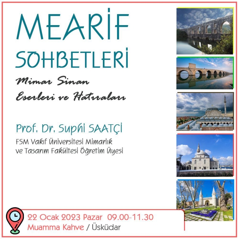 Sayın hocamız Prof. Dr. Suphi Saatçi'nin 22 Ocak 2023 Pazar günü "Mimar Sinan Eserleri ve Hatıraları" hakkında gerçekleştireceği seminer tüm ilgililere duyurulur.